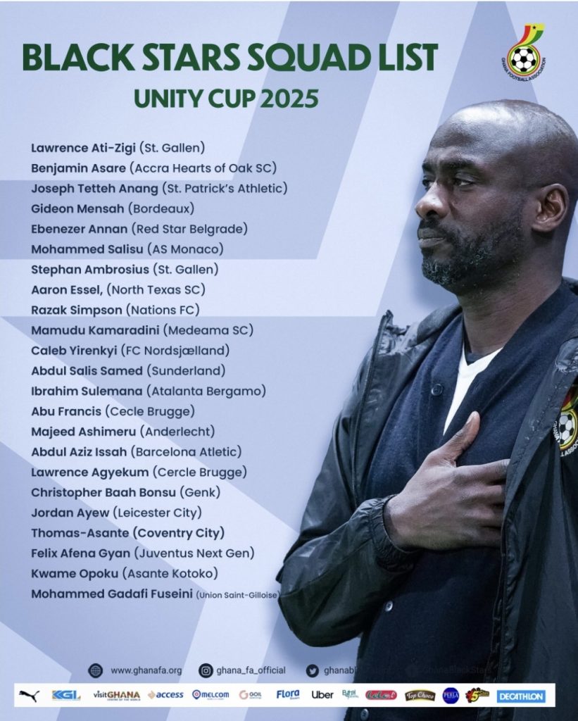 The stage is set for a thrilling showdown in London as Ghana’s head coach, Otto Addo, has named a dynamic 23-man squad for the much-anticipated Unity Cup 2025.