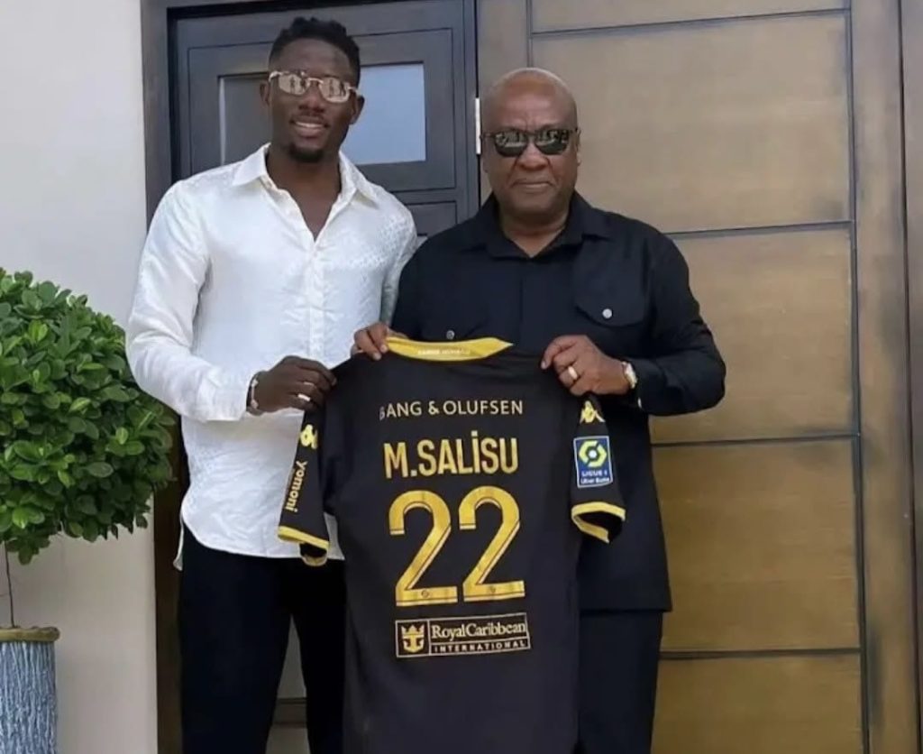 Black Stars defender Mohammed Salisu paid a courtesy call on Ghana’s former President, H.E. John Dramani Mahama, at his residence in Accra, where he presented him with a replica AS Monaco away jersey as a sign of respect and appreciation.