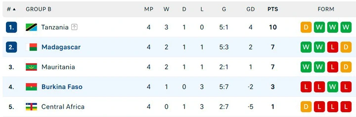 With the result, Madagascar finished the group stage with 7 points, edging out Mauritania on goal difference to clinch second place.