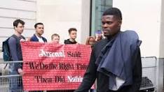 Demonstrators held a large banner that read: “Arsenal said: ‘We do the right thing.’ Then did nothing.” The message was a direct rebuke of the club’s handling of the serious allegations surrounding their player.
