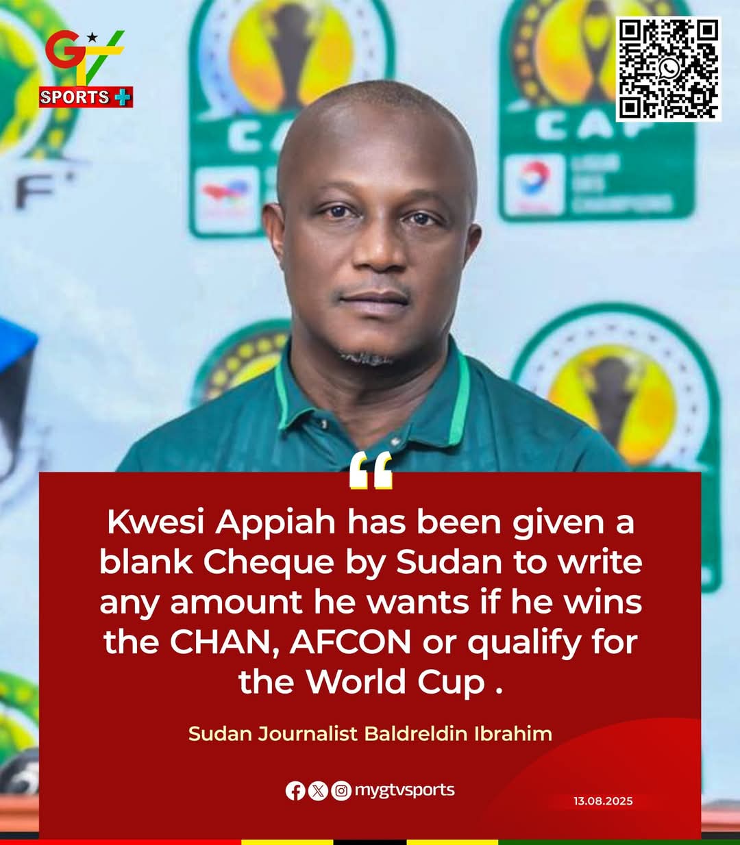 In a remarkable move, the Sudanese football authorities have reportedly given Kwesi Appiah a blank cheque, allowing him to write any amount he desires.