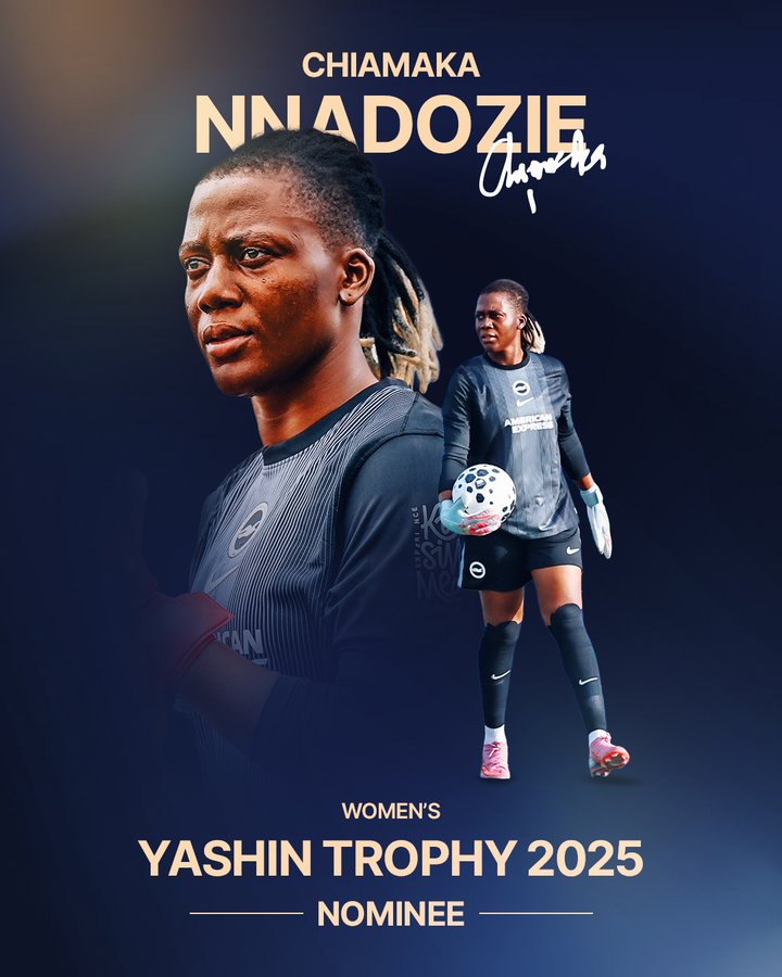 Brighton & Hove Albion have paid glowing tribute to Nigerian international goalkeeper Chiamaka Nnadozie after she secured fourth place in the Women’s Goalkeeper of the Year rankings at the 2025 Ballon d’Or.