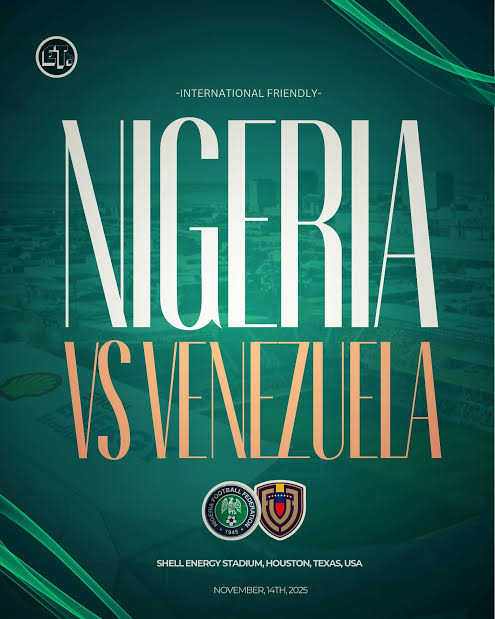 The Super Eagles are heading to Houston this November for one last big test before AFCON 2025. Nigeria will face Venezuela on Friday, November 14, at the Shell Energy Stadium—a historic first appearance for the three-time African champions at the venue.