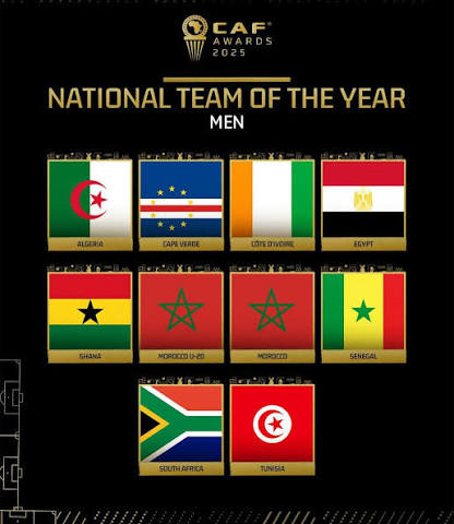 From the reigning champions Côte d’Ivoire to the ever-dominant Senegal, and from Ghana’s resurgence to Cape Verde’s remarkable rise, the list celebrates teams that defined African football in 2025. Morocco and their U-20 side also make the cut, showcasing the country’s growing football structure, while Egypt, Algeria, Tunisia, and South Africa add more star power to the race.